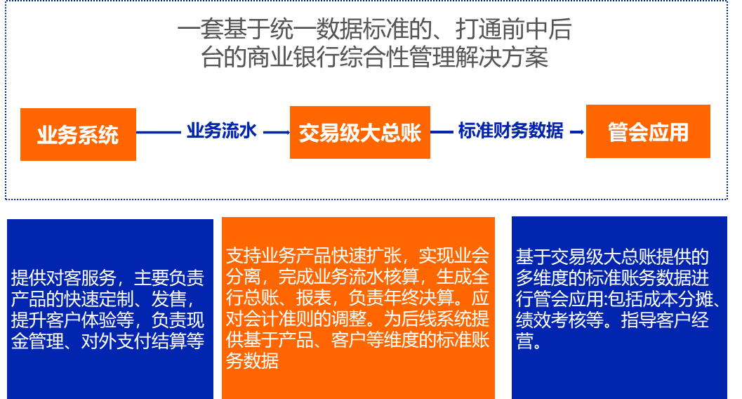 规范化全行的产品体系,为后续构建全行统一的管理会计平台打下数据基础,交易级大总账的数据粒度是最细的,可以为后续的管理会计应用提供底层数据。