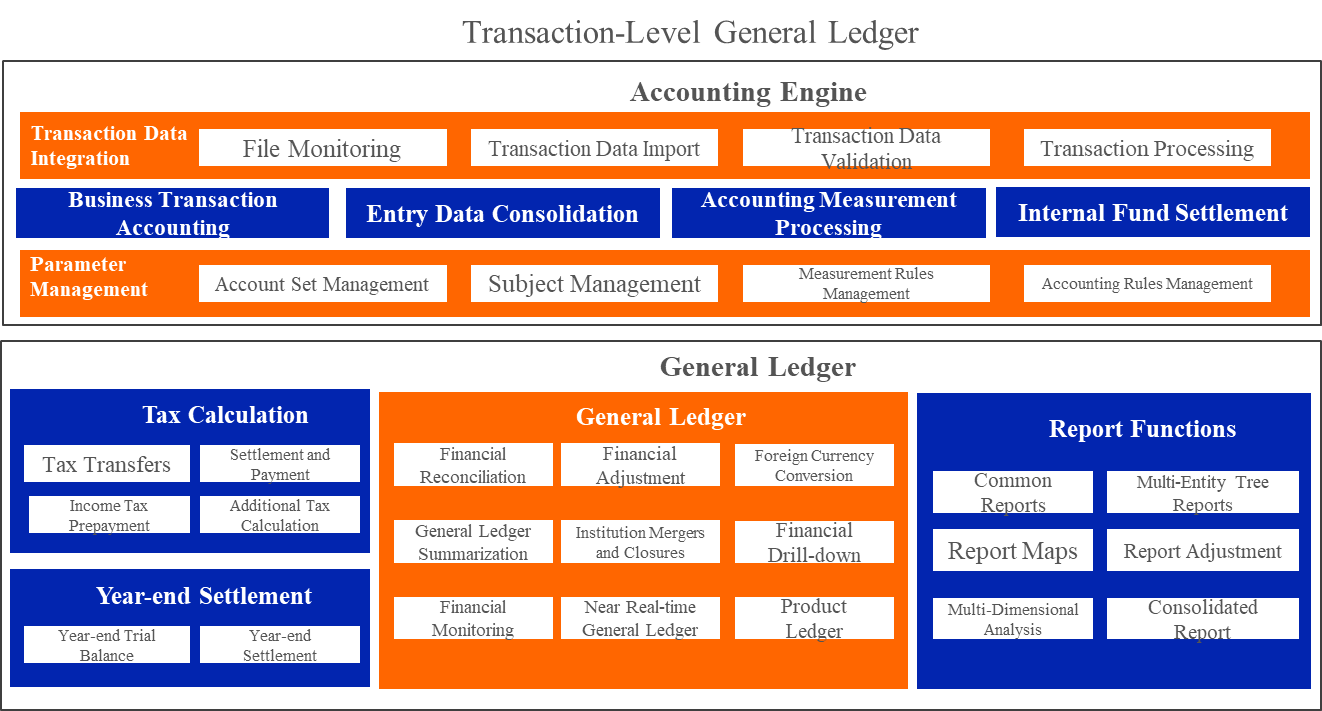 The Transaction-Level General Ledger solution for financial enterprises under VBM (Value-Based Management) provides a comprehensive transaction-level accounting platform specifically designed for financial enterprises. It comprises with products of Transaction-Level General Ledger, Account-Level General Ledger, New Accounting Standards, Comprehensive Tax Management and Enterprise Digital Brain etc.