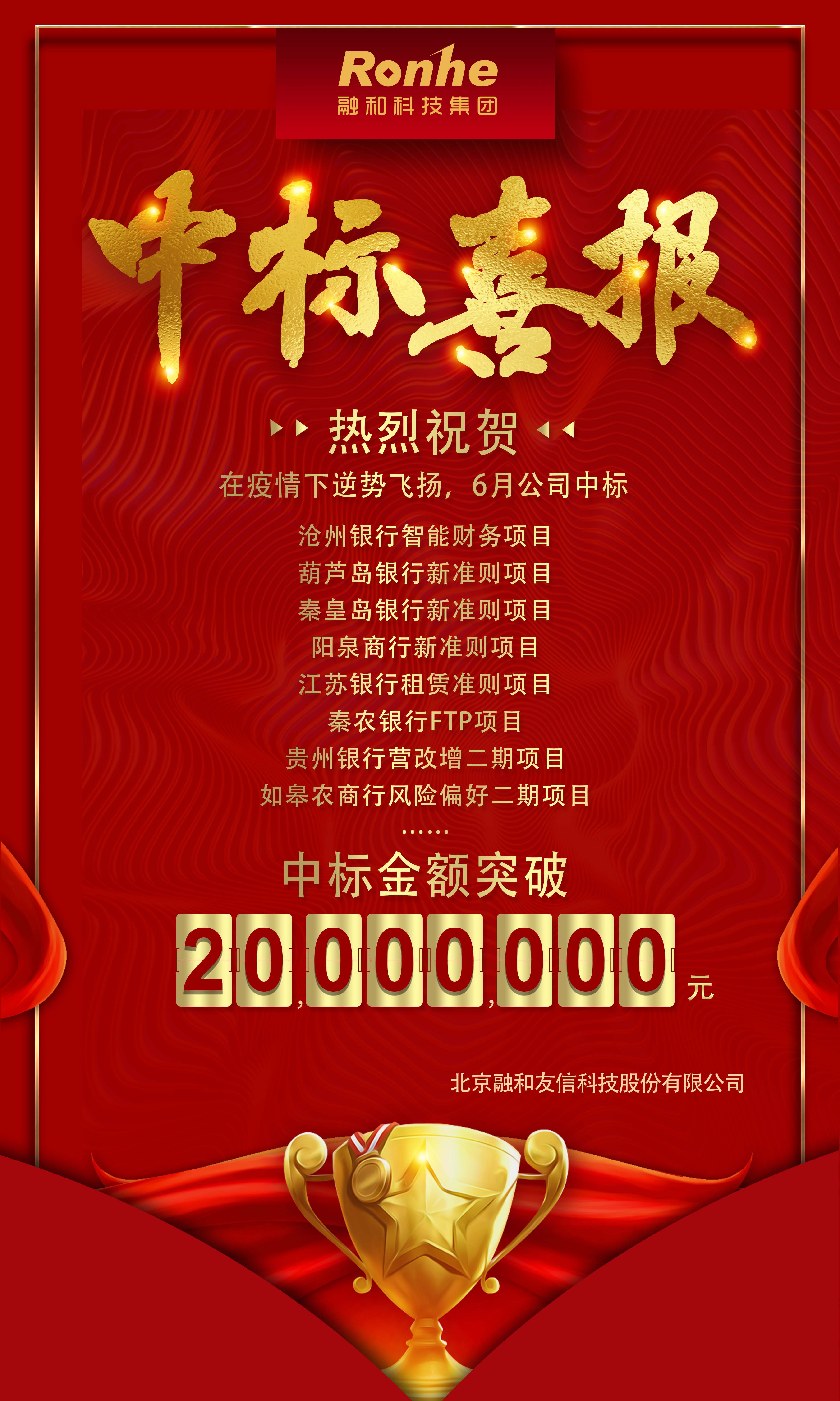 2020-07-07中标喜报|融和科技6月中标多个项目,单月中标总金额突破2000万元!2020年6月,融和科技在疫情下逆势飞扬,捷报频传,凭借优异的产品和解决方案,连续中标多个项目,单月中标总金额突破2000万元。 融和科技将一如既往的以“极致客户体验”为核心价值观,努力奋斗,持续为客户提供...了解更多 -