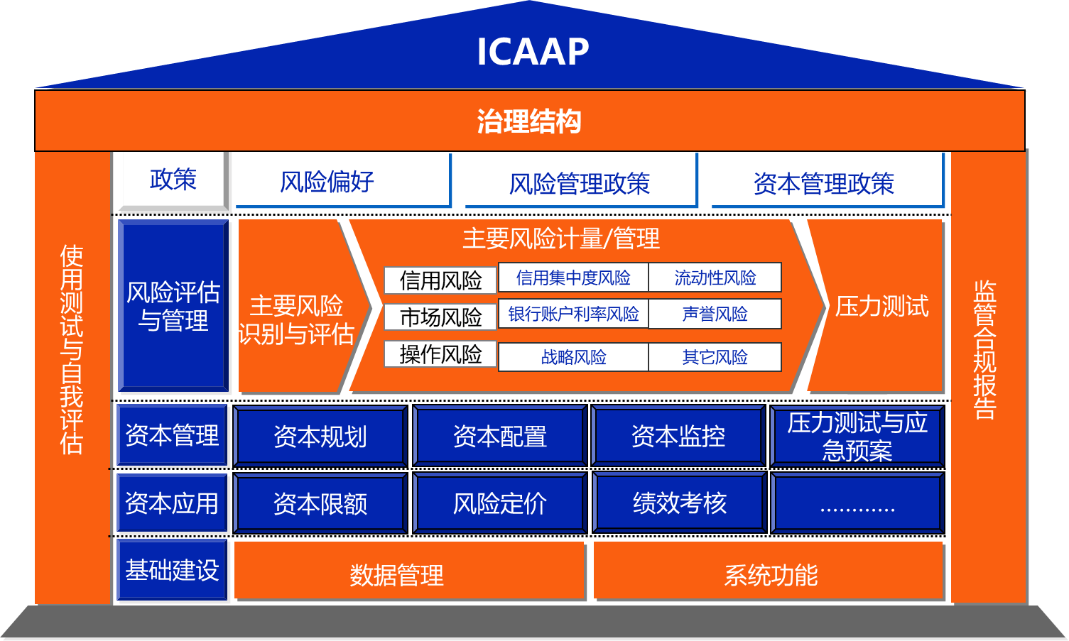 “VBM---内部资本充足评估体系(ICAAP)”旨在帮助商业银行满足监管要求,通过基础建设、资本应用、资本管理、风险评估与管理、政策等方法和手段,将资本管理与风险管理有机结合,实现对资本的有效管理。