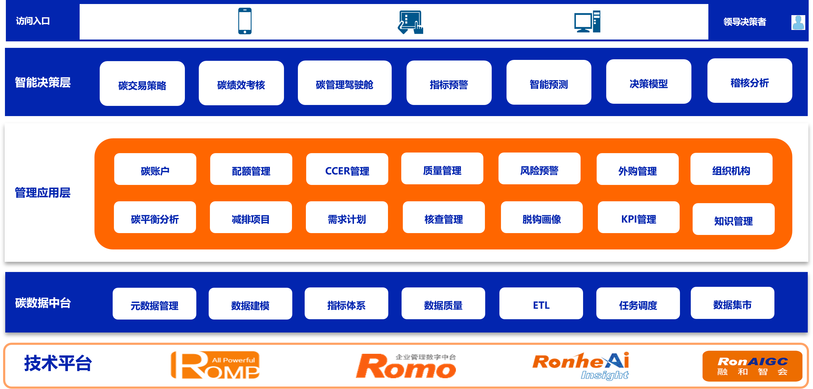 “VBM---智能碳资产管理”系统基于物联网、人工智能、大数据、金融衍生等技术,以碳资产和碳交易为核心,构建碳数字中台,形成碳数据治理、碳交易策略、碳绩效分析、履约风险控制为一体的管理平台。该系统通过多源数据整合,实现碳账本、配额、CCER、绿能、碳金融、核查报告等碳资产管理功能,并具备石化、电力、煤炭、汽车、制造、物流等行业的碳治理和碳金融服务能力。