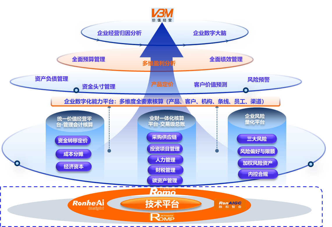 价值经营管理智能体VBM是基于价值经营理念、采用先进数智化技术打造的企业管理智能体,涵盖会计核算、财务管理、人力资源管理、投资管理、采购供应链、碳资产管理、盈利管理、风险管理等应用,是一个集业务交易、核算、分析、决策一体化的企业经营管理平台,通过对企业内外数据的识别、采集、存储、计算、挖掘,帮助企业从学习、思考到预警、预测、决策全过程的智能化经营管理工具,是企业实现精准营销、数字采购、产品创新、成本管控、内控合规、风险预警等领域的决策神经中枢。