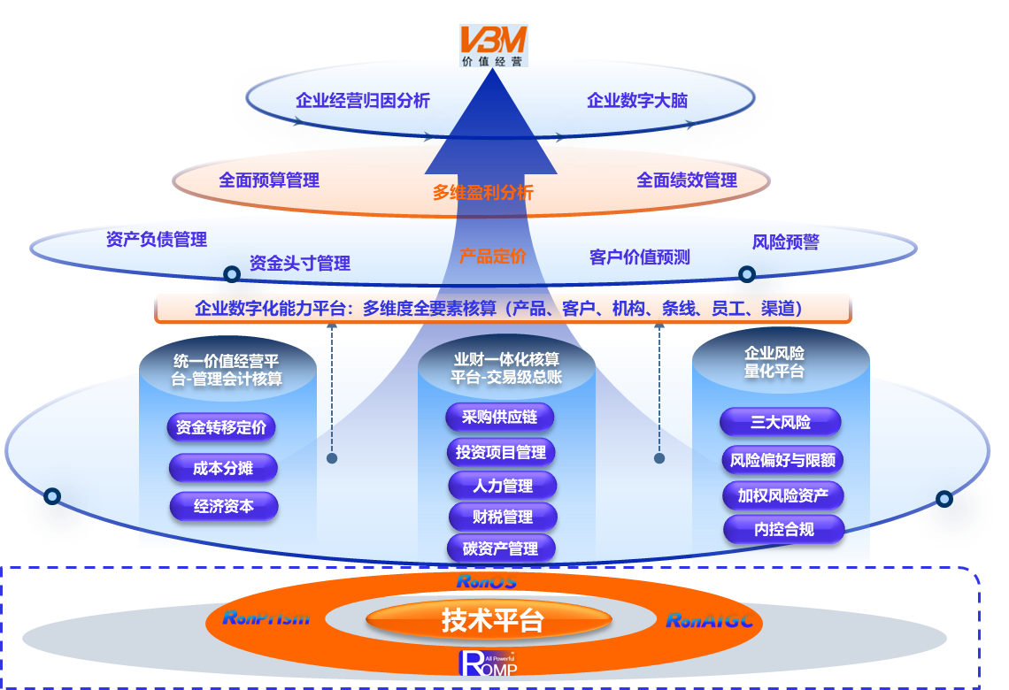 价值经营管理软件VBM是基于价值经营理念、采用先进数智化技术打造的、针对大型企业的企业管理软件,涵盖会计核算、财务管理、人力资源管理、投资管理、采购供应链、碳资产管理、盈利管理、风险管理等应用,是一个集业务交易、核算、分析、决策一体化的企业经营管理平台,通过对企业内外数据的识别、采集、存储、计算、挖掘,帮助企业从学习、思考到预警、预测、决策全过程的智能化经营管理工具,是企业实现精准营销、数字采购、产品创新、成本管控、内控合规、风险预警等领域的决策神经中枢。